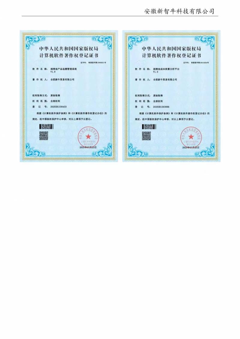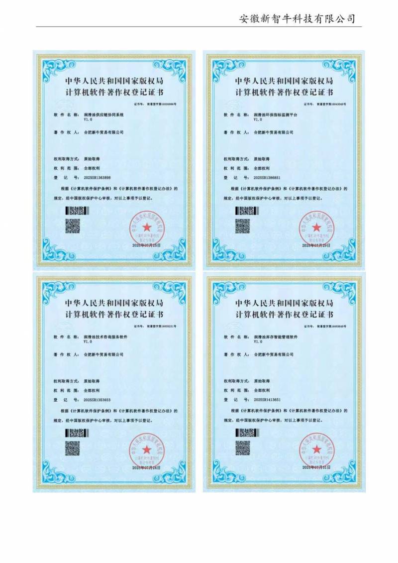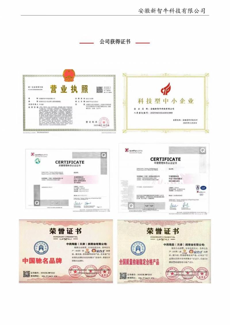 公司始终秉持“以品质为核心,以服务为依托”的经营理念,坚持“质量为先、客户至上”的原则,通过严格的供应链管控、完善的售后服务体系,确保为客户提供稳定可靠的产品与服务。凭借稳健经营、诚实守信的市场口碑,公司与国内外众多知名企业建立了长期战略合作关系。在发展自身的同时,公司积极践行社会责任,通过“新智牛爱车”俱乐部等公益平台,开展车辆养护知识科普、行业技术交流等活动,倡导“快乐工作、快乐生活”的现代理念,致力于与行业伙伴、社会各界共同推动润滑油市场的健康、可持续发展。未来,安徽新智牛科技有限公司将继续以技术创新为引擎,以服务升级为抓手,持续拓展润滑解决方案的深度与广度,力争成为国内领先的综合性润滑服务提供商,与广大客户携手共创价值、共赢未来。