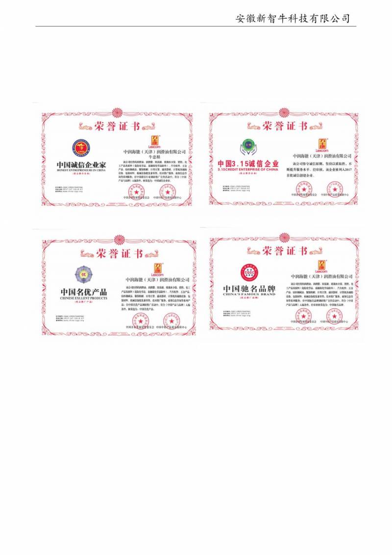 公司高度重视技术研发与品质管控,已通过IS09001:2015质量管理体系认证、1S014001:2015环境管理体系认证,拥有多项自主研发专利技术。旗下“力士康”“安力士”品牌获评“中国驰名品牌”,2025年被安徽省科技厅认定为“科技型中小企业”,彰显了公司在技术创新与产品品质上的核心竞争力。公司配备专业的技术服务团队,由资深润滑油工程师为客户提供免费技术支持,包括油品选型指导、润滑系统优化、设备磨损检测等定制化服务,帮助客户实现降本增效、节能减碳的目标。
