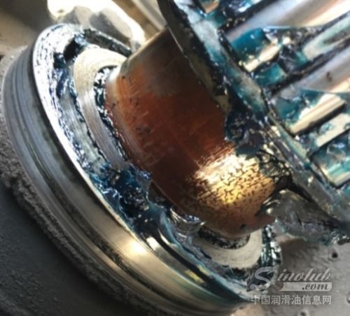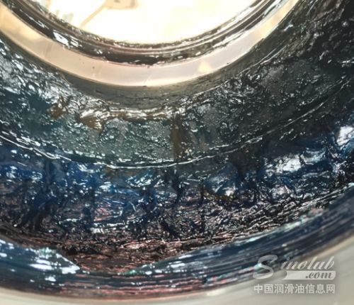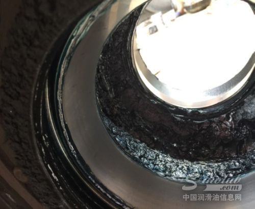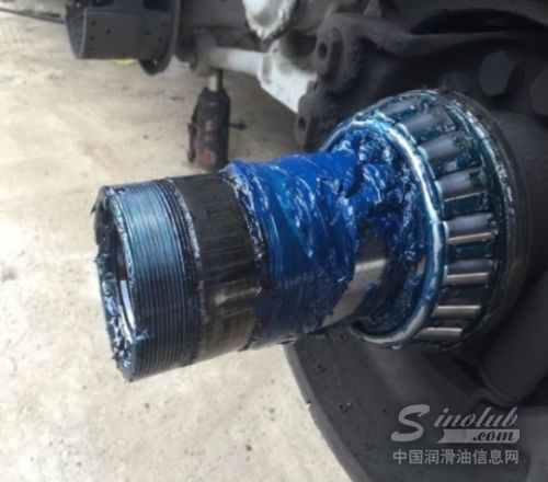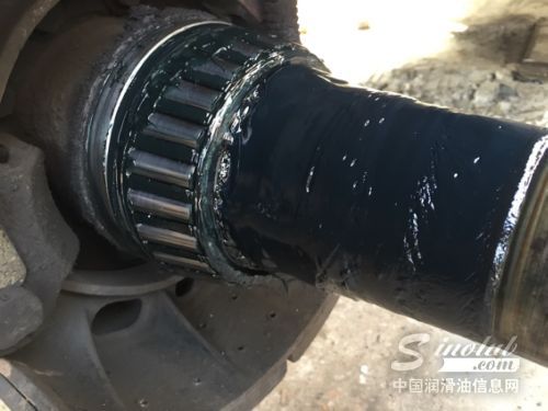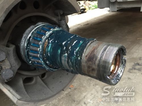 · 换脂周期:在行驶了15,000公里之后,刘师傅开车前往快修店查看润滑脂情况。非常凑巧的是,卡车的左右两侧各有一个油封坏了。在齿轮油发生泄露的情况下,美孚润滑脂XHP™ 222完整的粘附在轴头上(如图七)。即使已经使用超过15,000公里,对轮毂仍然有保护作用。而测试用润滑脂已经由于齿轮油泄露而彻底融化。失去了润滑脂的保护,轴头干磨痕迹明显(如图八)。